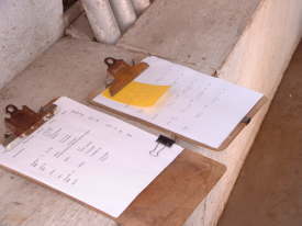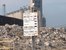 | 上記の黄色のタグが農家の契約時に契約量によって枚数が交付される。1枚25t単位でこのタグは最終的にリバーエレベーターでデータシートと一緒に 回収される。写真の黄色のタグはNONGMOPHFコーン |