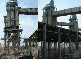 IPハンドリング専用のバージ積載用リベーエレベーター。背後のビンに入れずにバージへ直積みを行う。もちろんバックヤードには検査室があり合格品のみをうけいれる。 | |