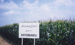 ここが、オイラ達の生まれ故郷さ...。 イリノイ州のヒヨバクと契約栽培の 農家の畑だっ…! 約115日でこの畑とお別れだっ… |