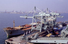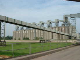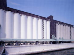 IPハンドリング専用のバージ積載用リベーエレベーター。背後のビンに入れずにバージへ直積みを行う。もちろんバックヤードには検査室があり合格品のみをうけいれる。 | |